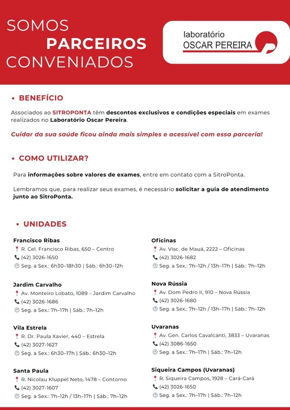 R. Balduíno Taques, 480 - Centro - CEP 84010-050 - Ponta Grossa/PR - Fone:(42)3224-1404 - E-mail: sindicato.pg@gmail.com